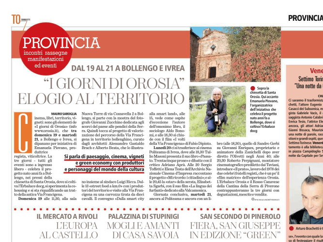 Il Progetto Orosia, che farsi conoscere ha scelto tre giorni di programma tra Bollengo e Ivrea da domenica 19 marzo a martedì 21 marzo, è insieme un’azienda agricola, un associazione culturale, un co-housing. Fattori che si sono incrociati nella costruzione del programma realizzato con la Pro-loco