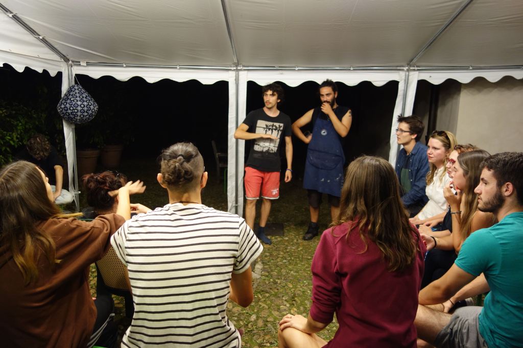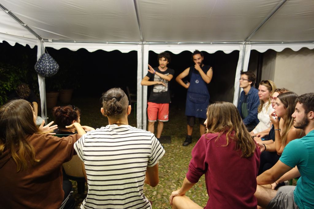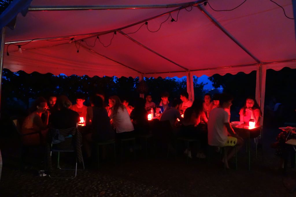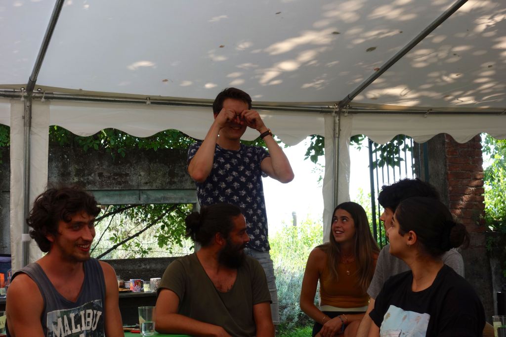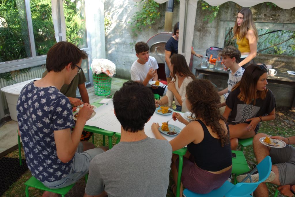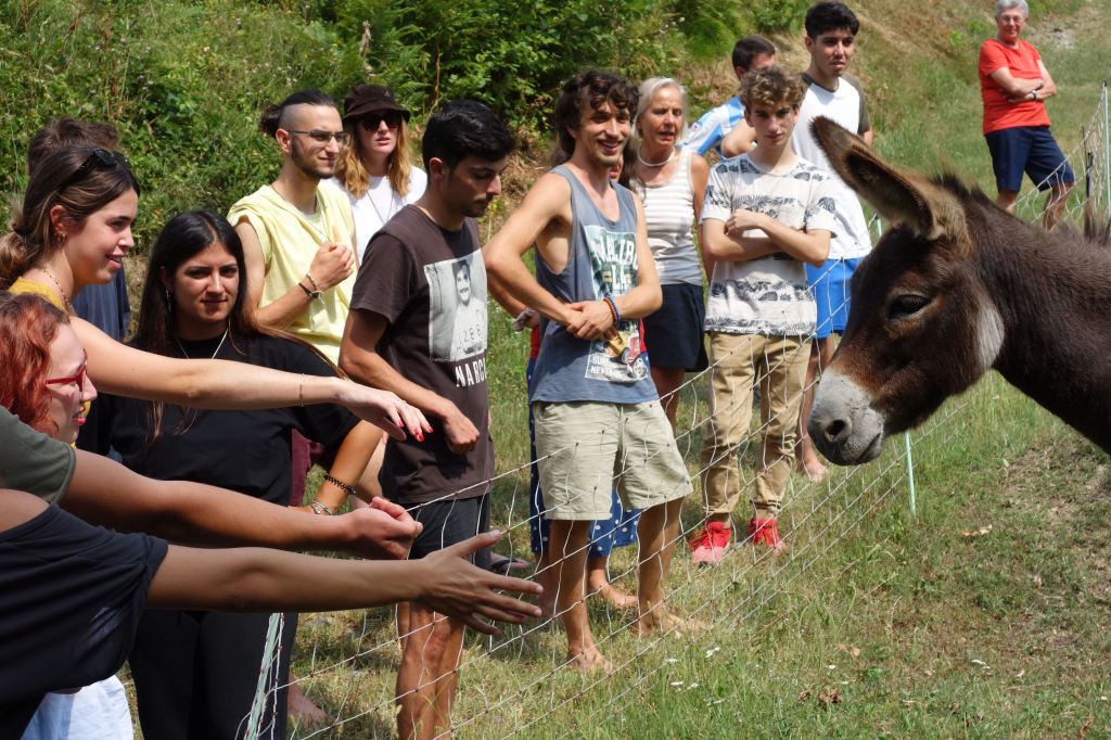 E’stata un’esperienza costruttiva, non solo per gli adolescenti. È stato bello sentire giovani voci di lingue diverse, risate scoppiettanti. I vari momenti di gioco, di lavori nel bosco, nella vigna e con gli animali. Ma soprattutto i grandi cerchi di riflessione e dialogo sul percorso del quotidiano, del confronto, sulle tematiche ambientali e di cooperazione.