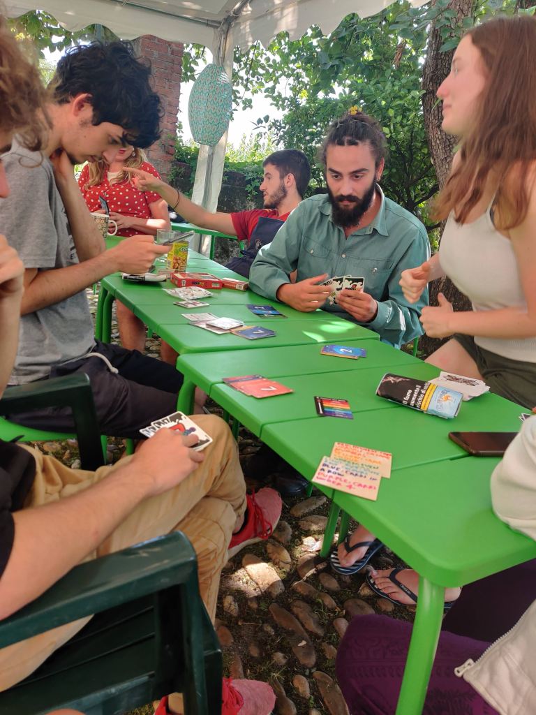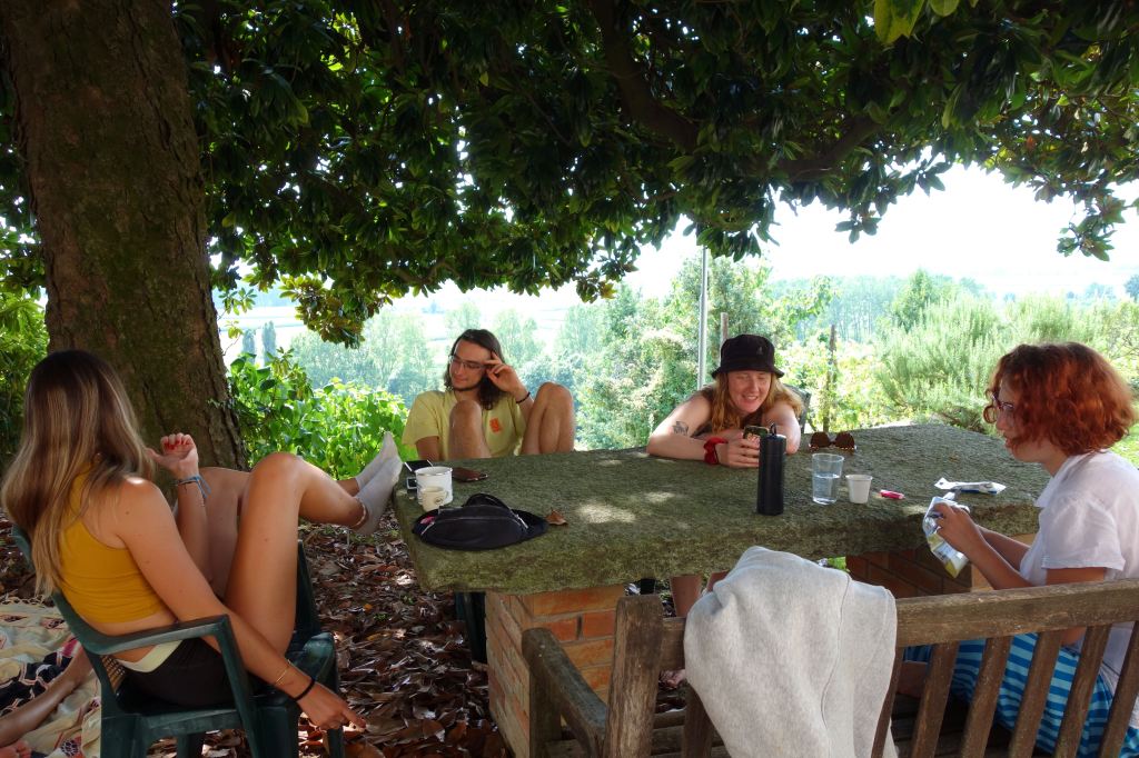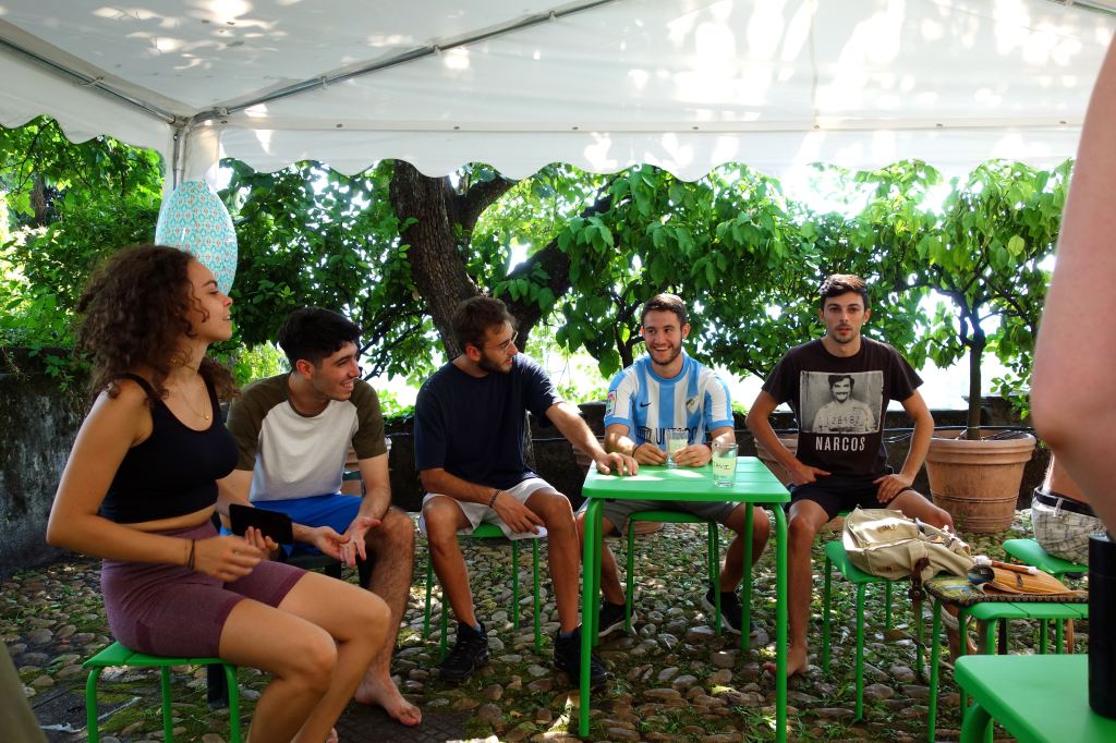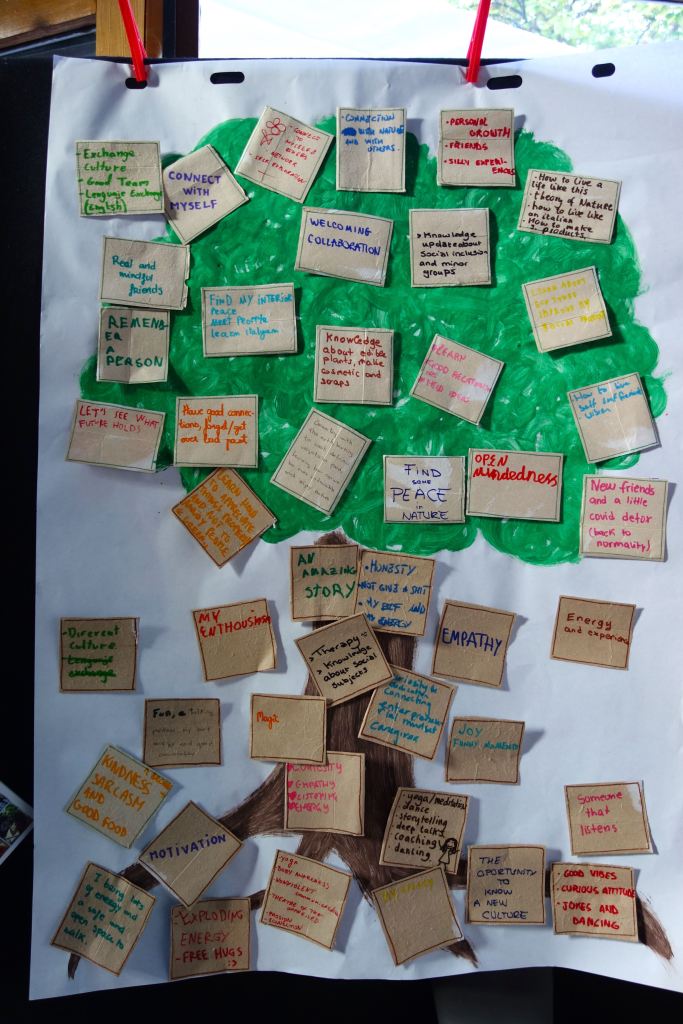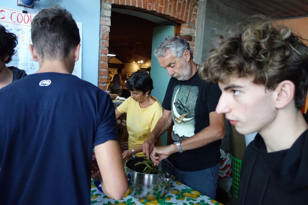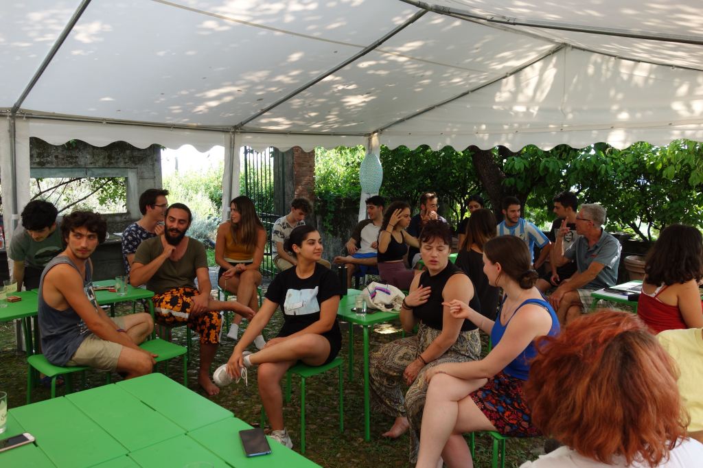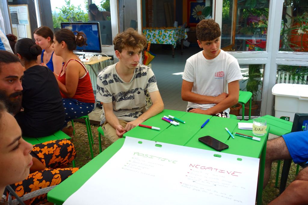 E’stata un’esperienza costruttiva, non solo per gli adolescenti. È stato bello sentire giovani voci di lingue diverse, risate scoppiettanti. I vari momenti di gioco, di lavori nel bosco, nella vigna e con gli animali. Ma soprattutto i grandi cerchi di riflessione e dialogo sul percorso del quotidiano, del confronto, sulle tematiche ambientali e di cooperazione.
