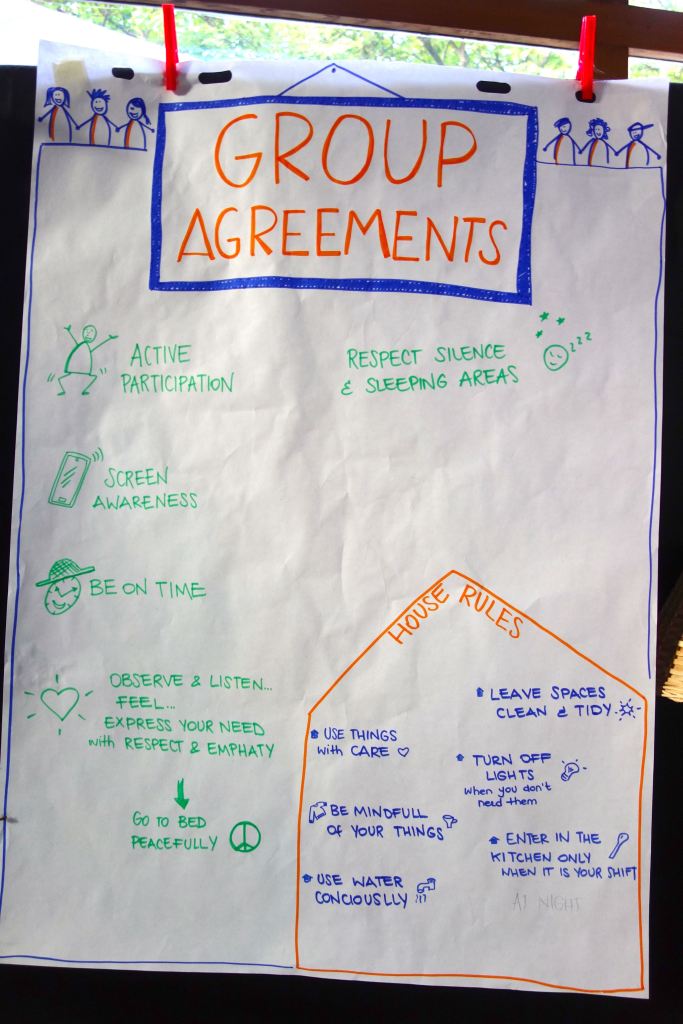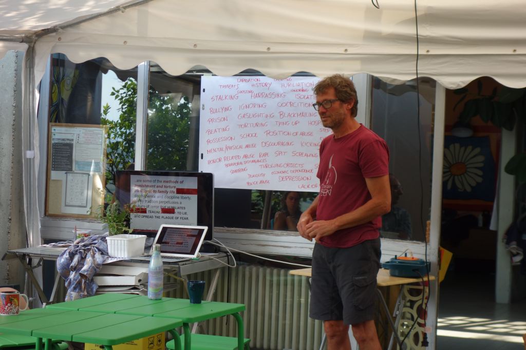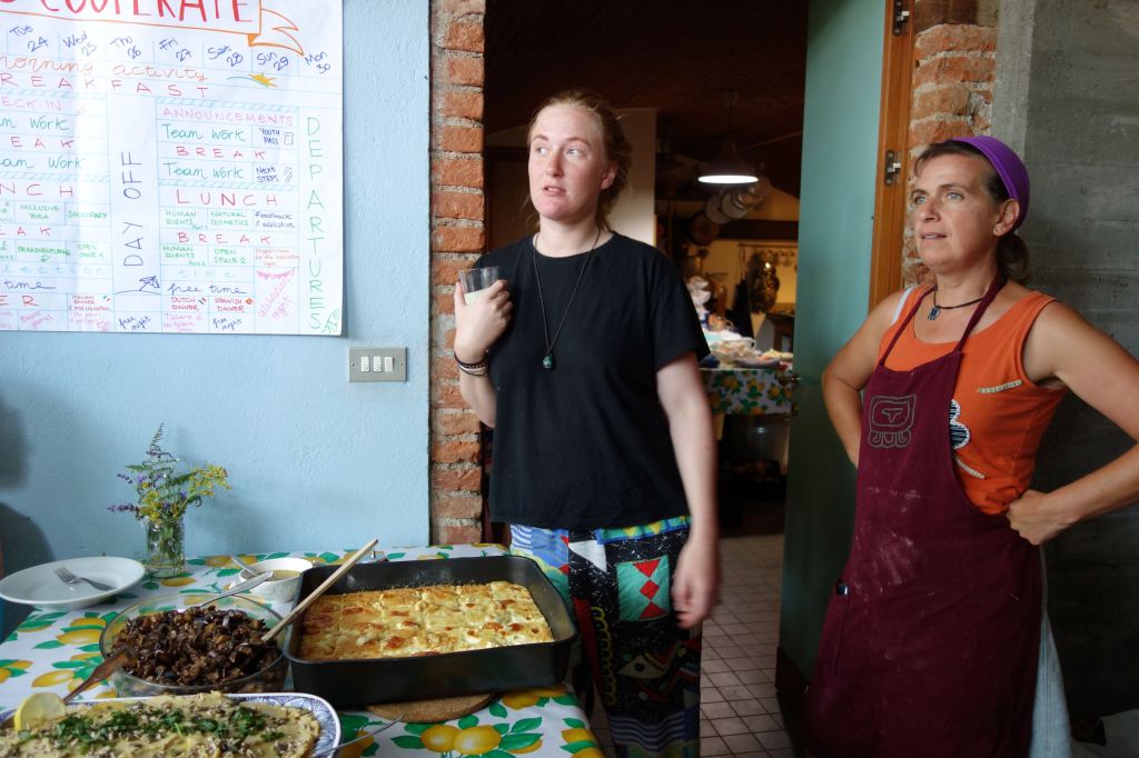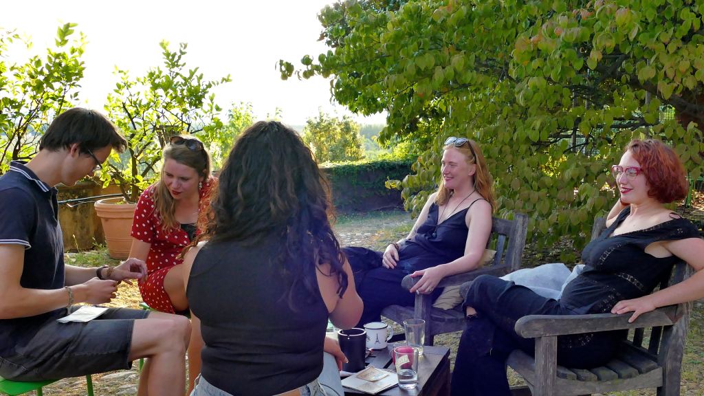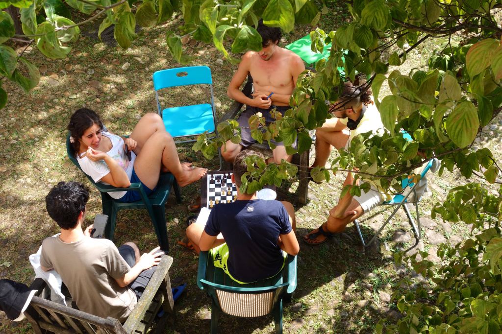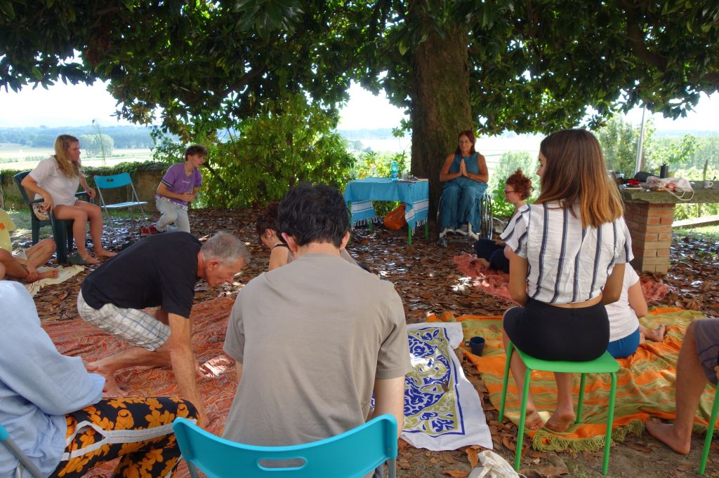 E’stata un’esperienza costruttiva, non solo per gli adolescenti. È stato bello sentire giovani voci di lingue diverse, risate scoppiettanti. I vari momenti di gioco, di lavori nel bosco, nella vigna e con gli animali. Ma soprattutto i grandi cerchi di riflessione e dialogo sul percorso del quotidiano, del confronto, sulle tematiche ambientali e di cooperazione.