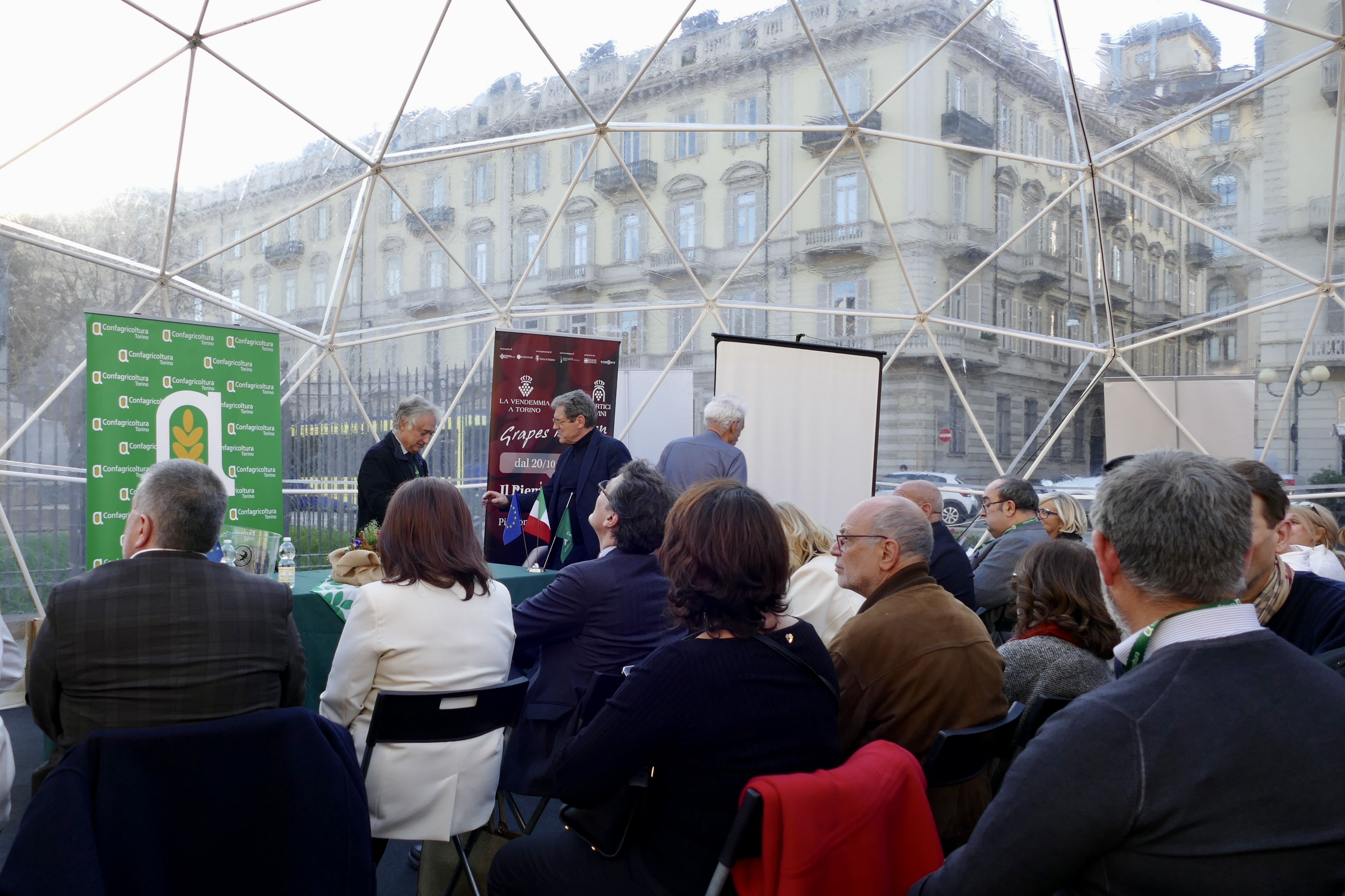 In collaborazione con Confagricoltura Torino e la regione Piemonte lunedì 6 novembre si è svolta nella tenso-struttura nei giardini di Piazza Solferino di Portici Divini, l’evento L’Erbaluce Day – Un giorno a Torino con il vitigno dell’anno.